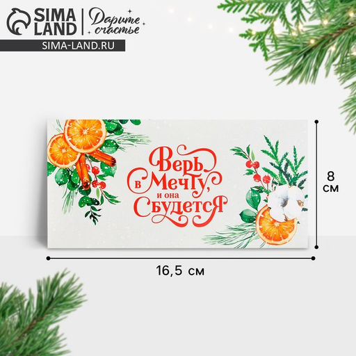 • Цена за 10 шт. Конверт для денег «Новый год: Верь в мечту и она сбудется», 16.5×8 см