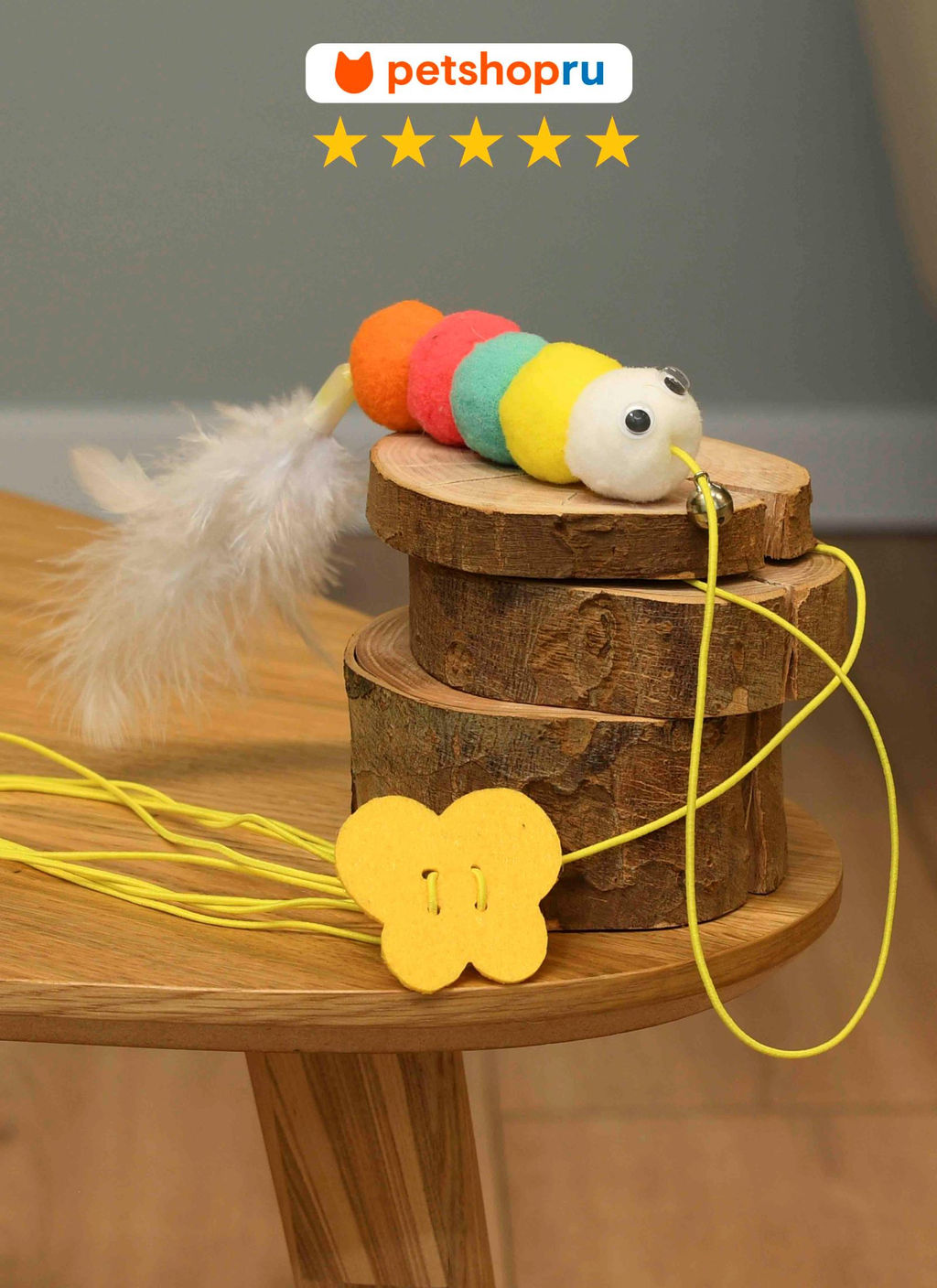 • Игрушка для кошек, подвесная гусеница на резинке с липучкой PS295