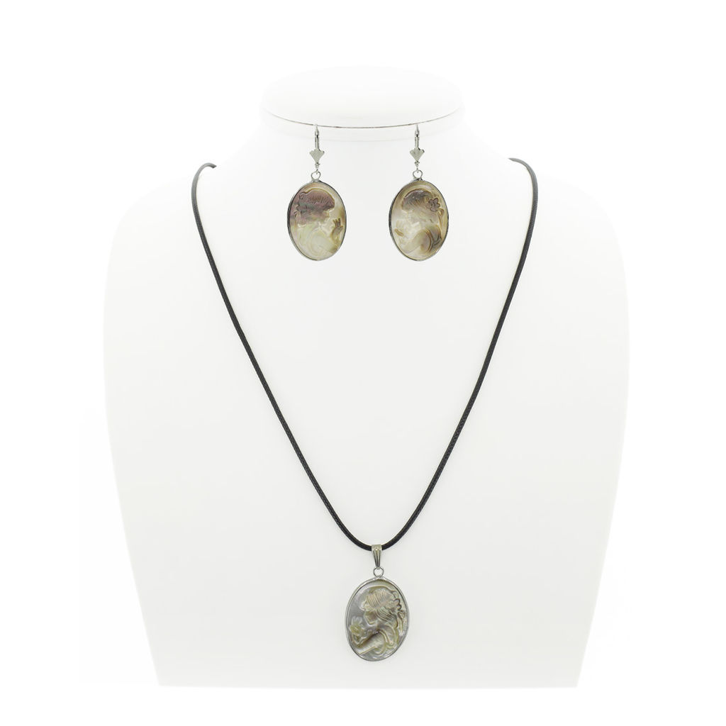 Набор "Камея" малая перламутр бежевый, серьги и кулон