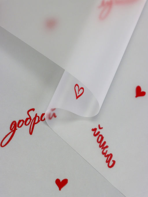 * Яркий дизайн: Красная пленка с выразительными надписями и сердечками подчеркнет значимость праздника, превращая каждый букет в послание любви и заботы. Такой декор станет прекрасным дополнением к цветочной композиции.