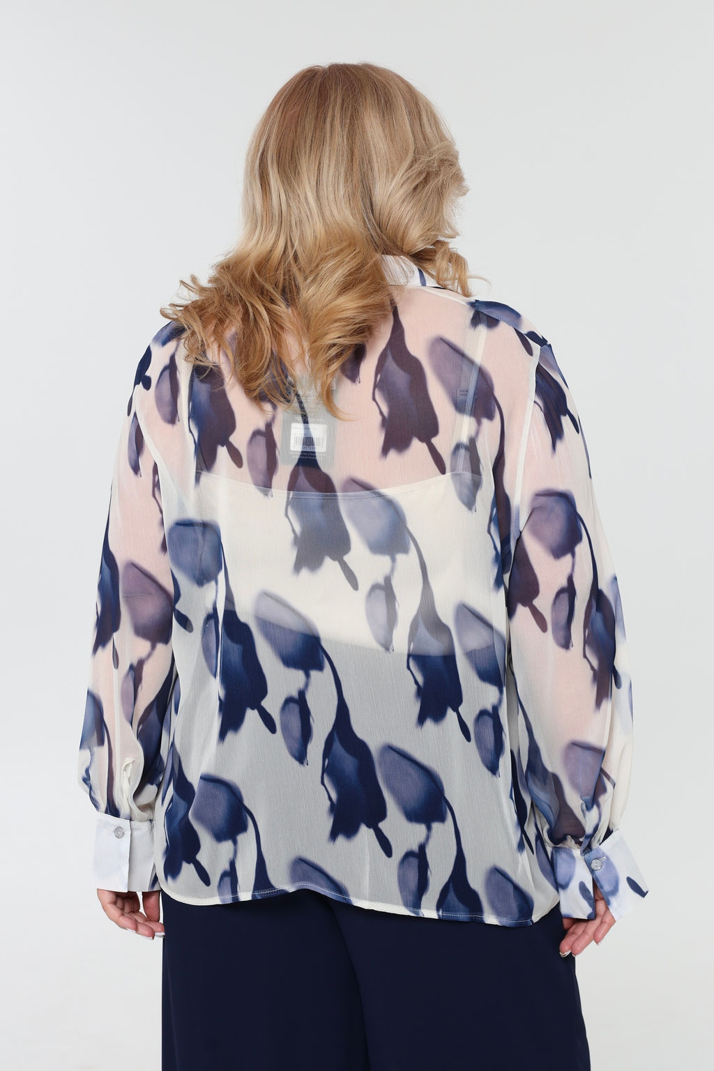 Рубашка шифон "синие тюльпаны" белая