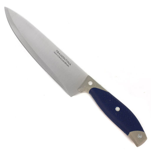 • Нож кухонный 190мм широкое лезвие, с синей прорезиненной ручкой "Универсал", в блистере (Китай)