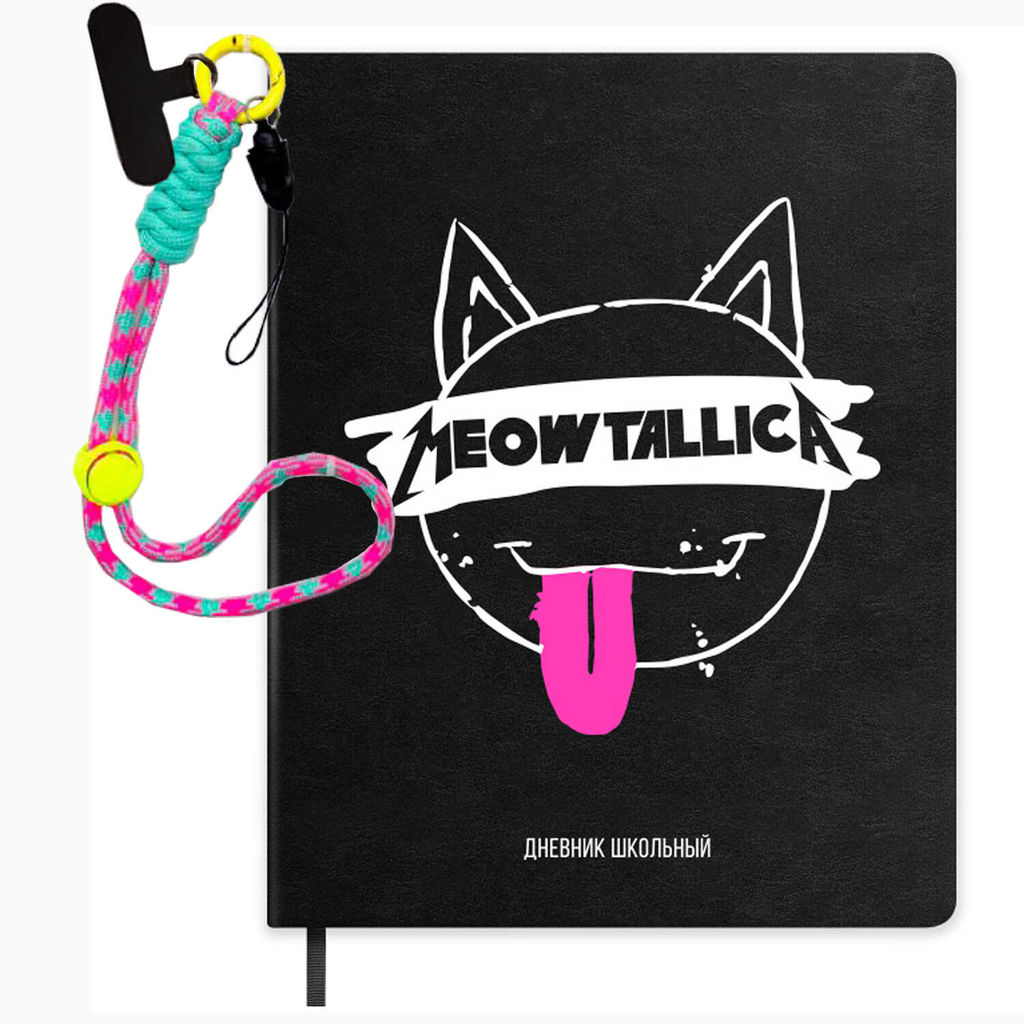 Дневник школьный в комплекте с брелоком арт. 72519 / 15 МЕТАЛЛ-КОТ (кожзам: А5+; твёрдый переплёт, материал обложки: искусственная кожа "Виннер"; декор: печать шелкографией в две краски; способ крепления блока: ниткошвейный; вн. блок: 48 л., белый офсет 80 г/м?, печать в одну краску, справочный материал: универсальная шпаргалка; отделка среза: окрашивание пантоном; закладка: одно ляссе; форзац: печать в одну краску; особенности: шнур-подвес с карабином-вкладышем для телефона в комплекте; индивидуальная упаковка: промостикер + ПЭТ-пакет)