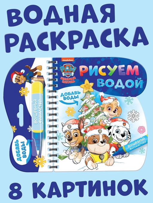 • Книжка - раскраска «Рисуем водой. Новый год», с фломастером, Щенячий патруль