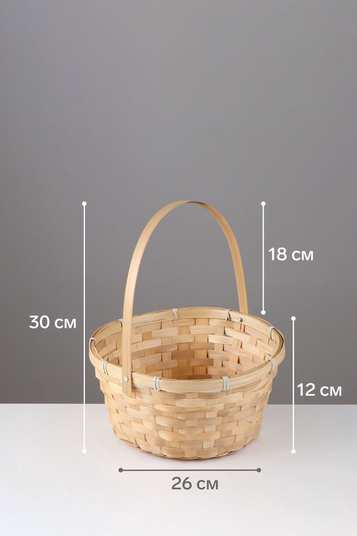 Корзина плетёная, 26×26×12 см, ручка h=18 см, бамбук, натуральный цвет