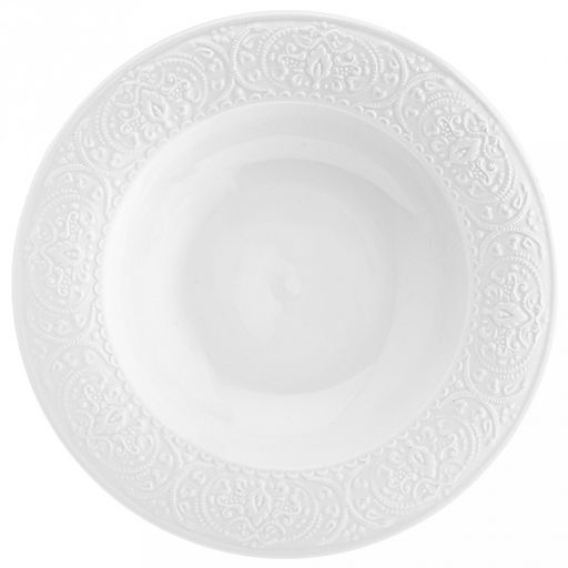 • "Русь" Тарелка глубокая фарфоровая д223мм h38мм, 400мл, белый, рельефный декор (Китай)