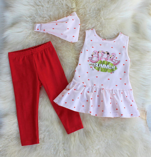 Комплект состоит из туники, украшенной принтом, лосин длинною 7/8 и косынки.