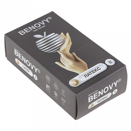• Перчатки медицинские смотровые латексные опудренные нестерильные одноразовые "Benovy" S, текстурированные, эластичные, внутреннее покрытие пудра, устойчивые к разрывам, водонепроницаемые, желтый, ГОСТ 52238-2004, цена за упаковку 50пар, в коробке (Ма