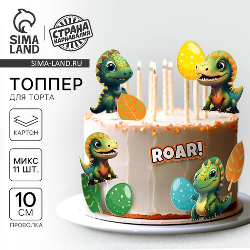 • Цена за 3 шт. Топперы для торта «Дракончики», картон на подложке, с проволокой