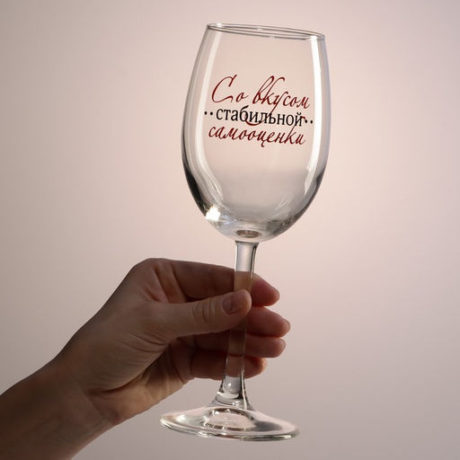 Бокал для вина «Со вкусом самооценки», 360 млДанный бокал подойдет как для красного, так и для белого вина. Для нанесения рисунка мы используем высокотемпературную деколь, она выглядит на много ярче и контрастней. Она не смывается и не теряет вид со временем. Бокалы будут уместны на любой кухне и любом празднике, хорошо подойдут в подарок близкому человеку, другу, коллеге.Характеристики:- высота бокала 21,5 см;- диаметр горлышка 6 см;- диаметр ножки 7,5 см;- объем бокала 360 мл.Поставляются в подарочной коробке по 1 шт.Мыть изделие в посудомоечной машине не рекомендуется. После нескольких процедур верхний слой тускнеет и постепенно стирается. Если есть намерение сохранить необычную посуду как можно дольше, лучше будет мыть бокал руками. Набор: Нет. В наборе, шт.: 1. Объём, мл: 360. Рисунок: Да. Тематика праздника: День рождения. Тематика праздника: Универсальная тематика. Назначение: Для вина. Вид: Бокал. Можно мыть в посудомоечной машине: Нет. Текстура: Гладкая. Особенности: Деколь. Бесплатная доставка: Да. Наша разработка: Да. Размеры товара: 6.3/21.3/6.3.