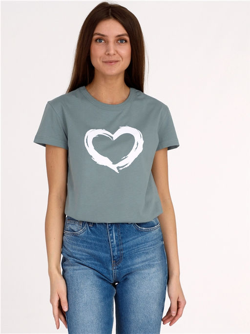 футболка,хлопок 100%,кулир / хлопок 100%,серо-зеленый113 / - / Сердце кистью / - / - / -,Футболка выполнена из легкого хлопкового полотна. Изделие свободного покроя с короткими рукавами и округлым вырезом горловины, украшено дизайнерским принтом. Уход: только машинная стирка (руками не стирать!) при температуре 40 градусов, без предварительного замачивания. Изделия с печатью перед стиркой необходимо вывернуть на изнаночную сторону.