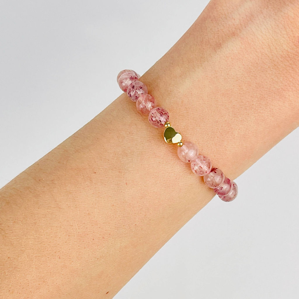 • Браслет из Клубничного кварца со вставкой сердце 16 см