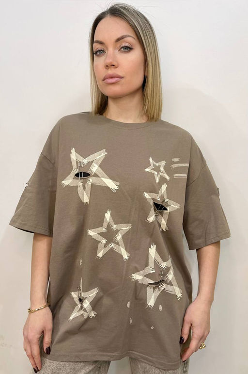 K12355 Футболка OVER SIZE (плотный хлопок) КОРИЧНЕВЫЙ
