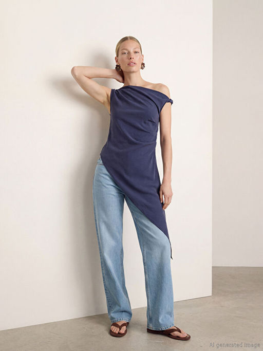 • D?k?ml? Yaka Modal Kar???ml? Asimetrik Kesim Bluz