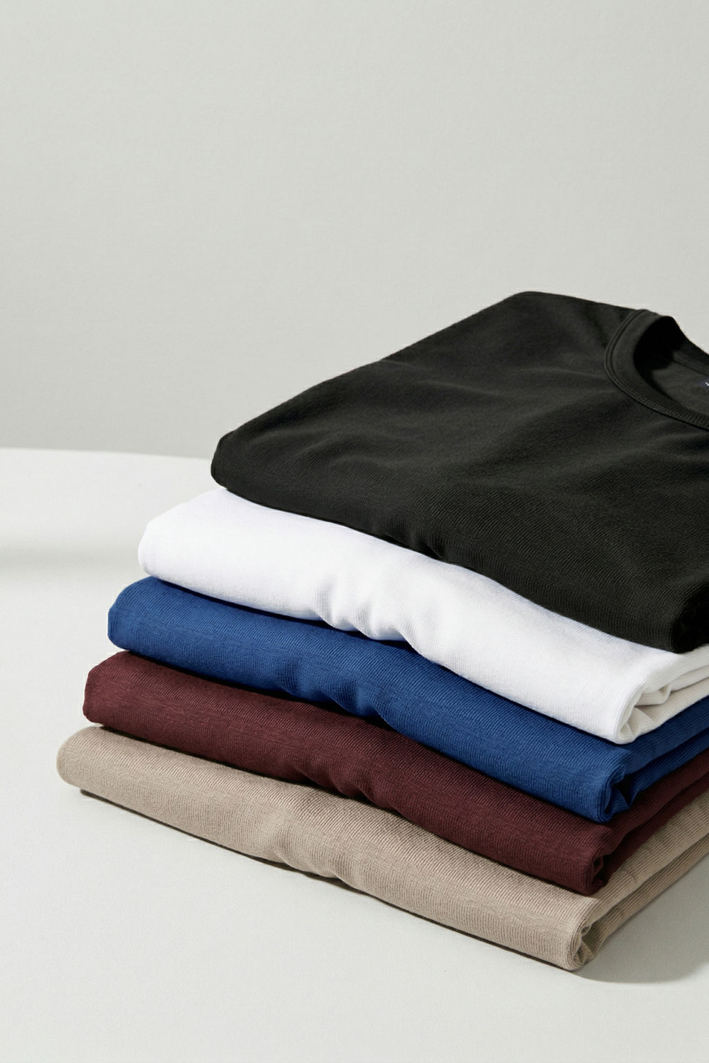 Siyah-Lacivert-Kahverengi-Vizon-Ekru Slim/Dar Kesim 5li Paket %100 Pamuk Tok T-shirt TMNAW20TS0243