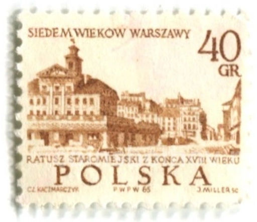 • Марка 700 лет Варшаве  Ратуша Старомесская 1965 год Польша