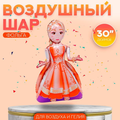 • Воздушный шар фольгированный 30" «Девочка в оранжевом платье», под воздух