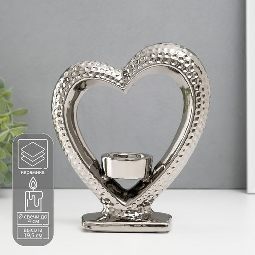 • Подсвечник на 1 свечу Сердце на подставке, d=4 см, серебро, 17?5.5?19.5 см