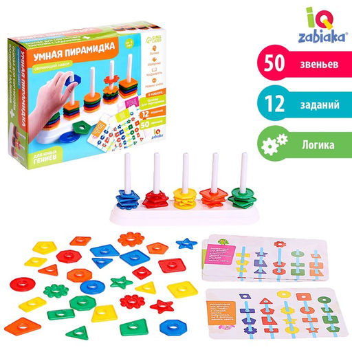 Обучающий набор «Умная пирамидка» — это то, что нужно юным будущим гениям! Яркие картинки, логические задачки, фигурки-звенья самых ярких цветов и необычных форм привлекают внимание даже взрослого.Малыши с радостью будут собирать пирамидку, развивая мелкую моторику и усидчивость. А детей постарше порадуют карточки с заданиями для сортировки фигурок по цвету и форме. Вы можете придумать свои игры и обучить ребёнка счёту.Увлекательная игра рекомендована детям старше 3 лет.Играйте и развивайтесь вместе с нами! Возраст: От 3 лет. Развитие навыков: Моторика. Развитие навыков: Фигуры, цвета. Развитие навыков: Логика. Развитие навыков: Счёт. Бесплатная доставка: Да. Наша разработка: Да. Размеры товара: 5.3/10/21.
