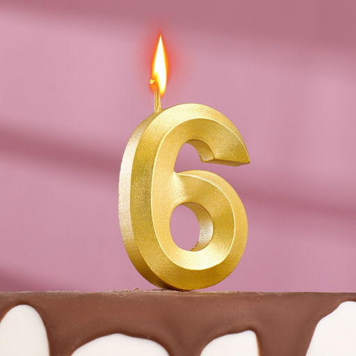 Высота свечи без шпажки, см: 5.5. Высота свечи, см: 9.5. Цифра: 6. Бесплатная доставка: Да. Примечание: Размер свечи указан без шпажки..