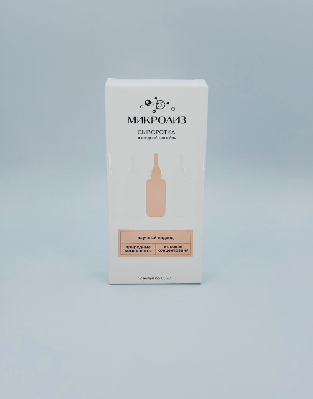 Сыворотка пептидный коктейль, это концентрат активов с многокомпонентным составом разработанным для коррекции и предотвращения преждевременного развития возрастных изменений кожи. Действие сыворотки направлено на усиление интенсивности обменных процессов, микроциркуляции, а также активации синтеза опорных волокон (коллагена) и гликозаминогликанов (гиалуроновой кислоты). Укрепляет кожу, повышает ее тонус и эластичность, предотвращает появление морщин, деформационных изменений овала лица, а также гиперпигментации.