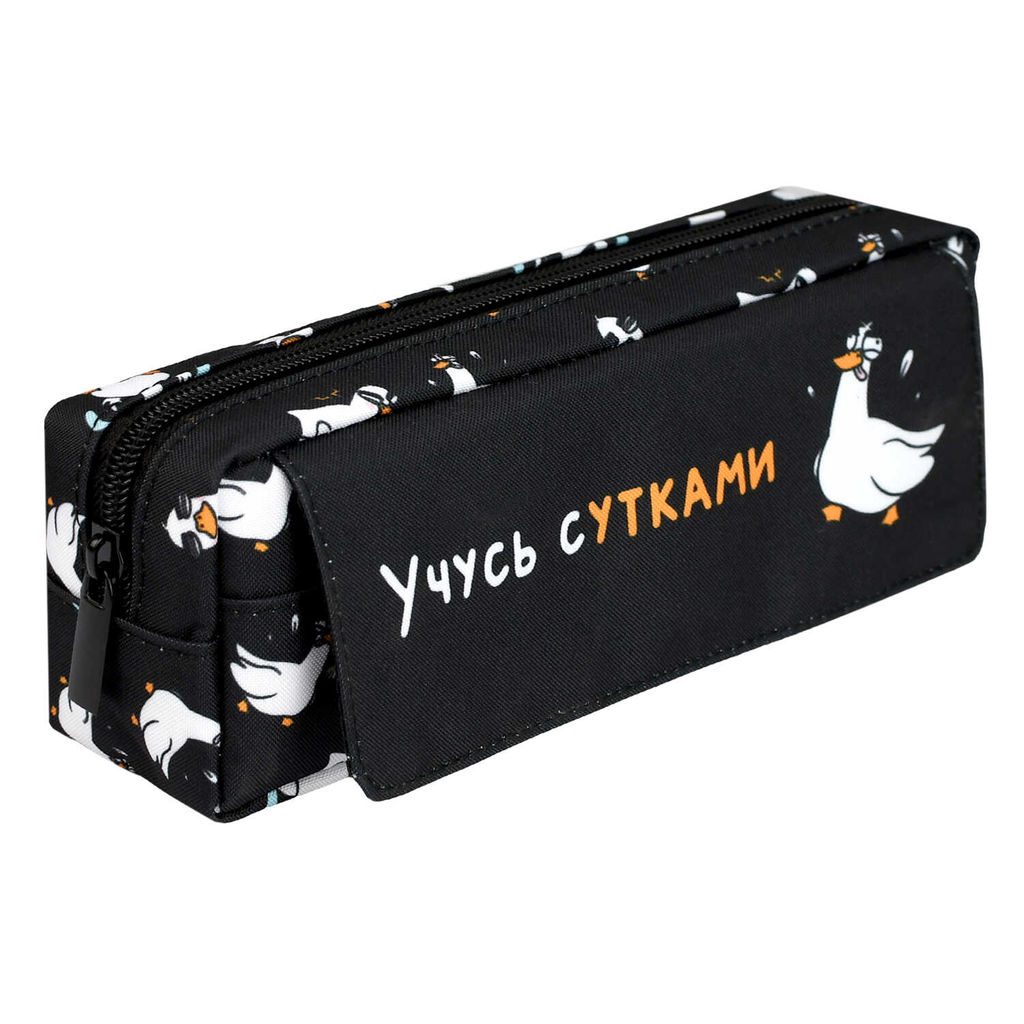 Пенал школьный Феникс+, арт.68360/ 24 УЧУСЬ С УТКАМИ (без наполнения, 20х7х5 см, полиэстер, молния, сублимационная печать, ПЭТ-пакет).