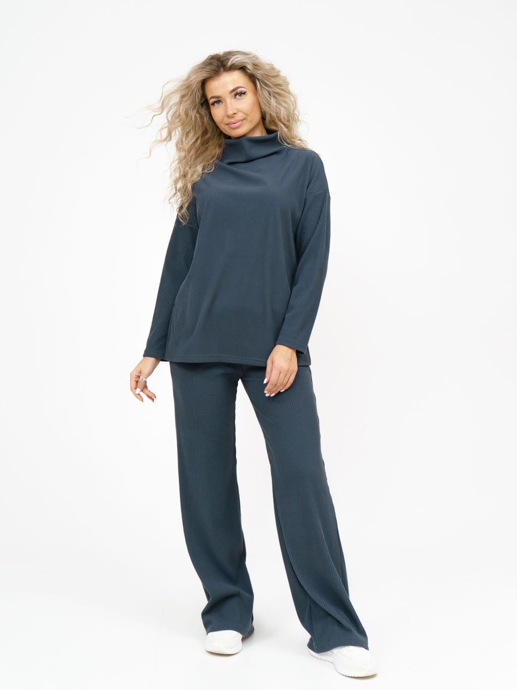 Женский брючный костюм из лапши-рубчик с добавлением кашемира это стильный и комфортный комплект, созданный для повседневной носки в осенне-зимний сезон. Мягкий трикотаж приятен к телу, дарит уют, отлично сохраняет форму и не теряет привлекательности даже после многочисленных стирок. Костюм состоит из кофты свободного кроя и брюк-труб с ровным низом и боковыми карманами. Удобный эластичный пояс на талии обеспечивает комфортную посадку и свободу движений. Завышенная талия и прямой силуэт выгодно подчеркивают фигуру, скрывают недостатки и делают образ женственным. Благодаря эластичной структуре ткани костюм одинаково хорошо подходит как для миниатюрных девушек, так и для обладательниц пышных форм, а также станет удобным вариантом для беременных и кормящих женщин. Универсальный дизайн делает этот костюм базовым элементом гардероба: он уместен дома, на прогулке, в путешествии, на встрече с друзьями или в качестве комфортного комплекта для работы и отдыха. Верх и низ можно носить как вместе, так и по отдельности, создавая разнообразные стильные образы. Женский костюм из лапши с кашемиром это удачное сочетание уюта, практичности и модного дизайна. Он станет вашим любимым вариантом для повседневной носки и отличным подарком маме, сестре или подруге.