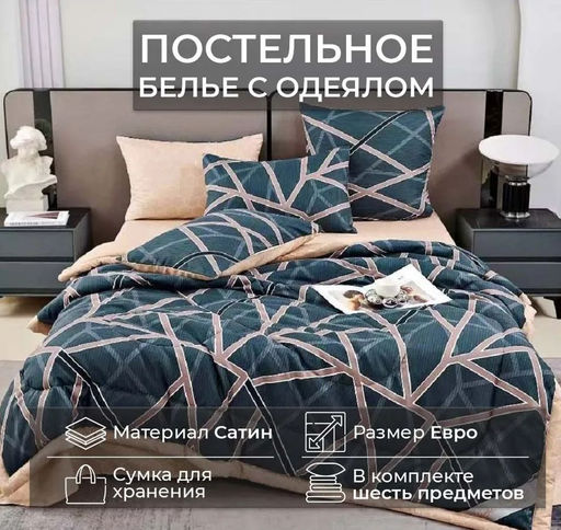 Евро: простыня 230х250 см, наволочка 50х70 см - 2 шт., наволочка 70х70 см - 2 шт., одеяло 200х220 см
