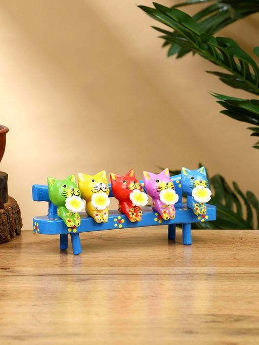 • Сувенир «Котята на скамейке», 19×8×6 см, дерево, голубой