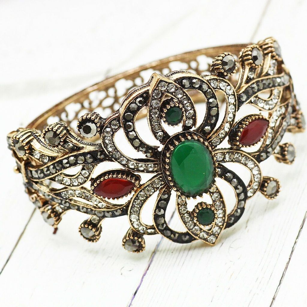 Красивый браслет восточного стиля из специального гипоаллергенного ювелирного сплава,который покрыт золотом или устойчивым родиевым покрытием, предотвращающим раздражение кожных покровов.