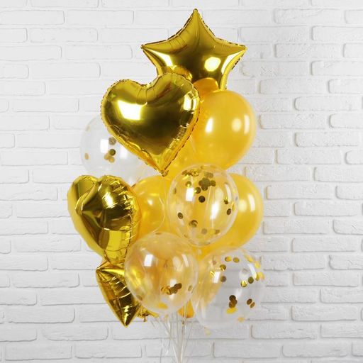 • Воздушные шары, букет «Романтика», набор 14 шт., золотые