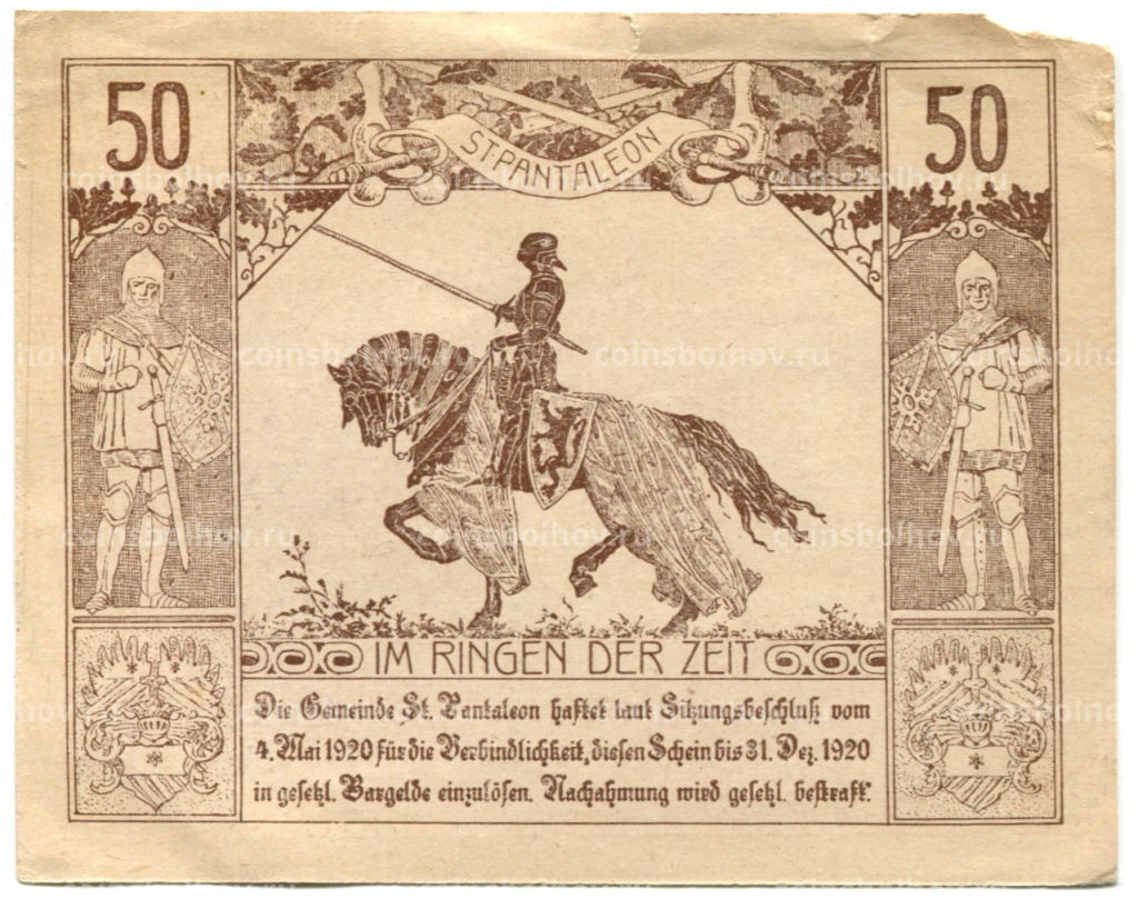 Банкнота 50 геллеров 1920 года Австрия Санкт-Пёльтен (нотгельд)