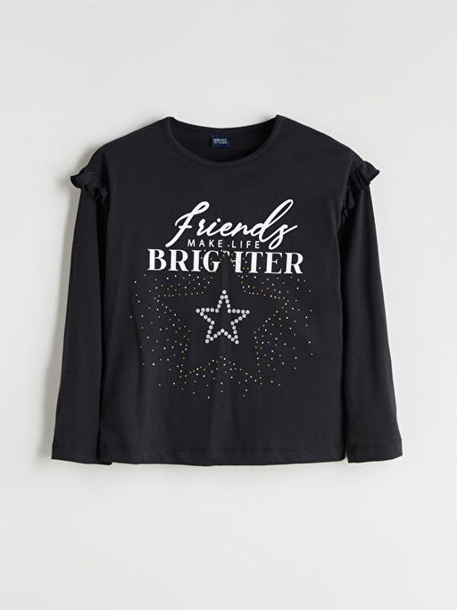 Bisiklet Yaka Bask?l? K?z ?ocuk Ti??rt