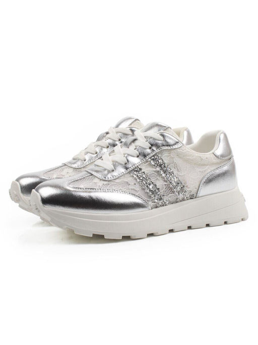 • 03-A143-3A GREY/SILVER Кроссовки летние женские (натуральная кожа, текстиль)