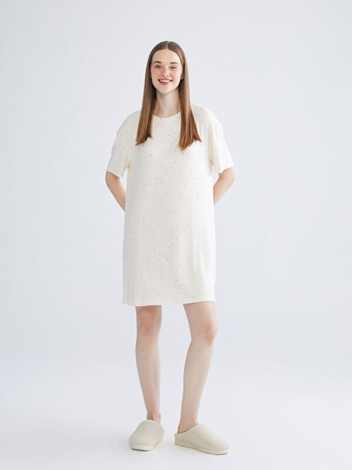 • Bisiklet Yaka Bask?l? Kad?n Gecelik