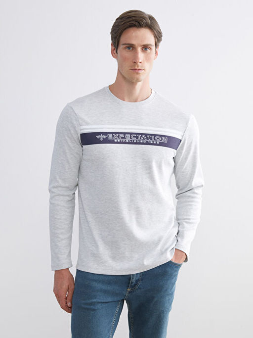 Bisiklet Yaka Bask?l? Erkek Sweatshirt