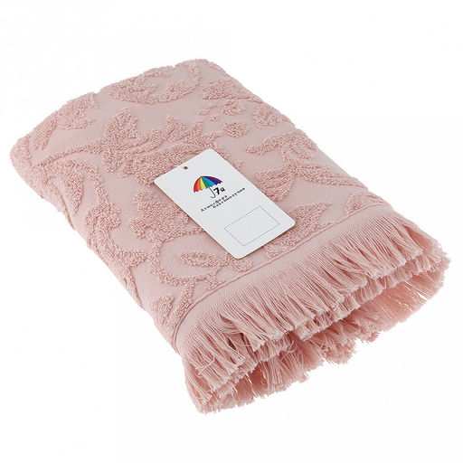 • Полотенце махровое "Королевский шик" 50х90см, хлопок 100%, с бахромой, пыльная роза (Китай)