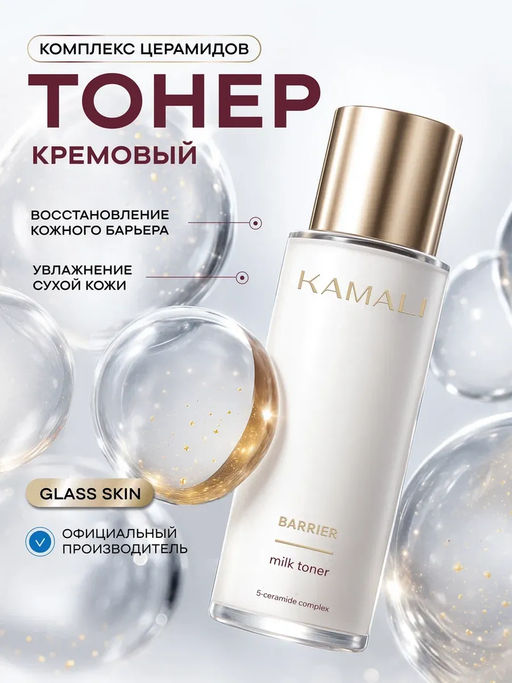 Тонер для лица KAMALI целенаправленно возвращает жизнеспособность сухой и чувствительной коже. Он насыщает влагой, укрепляет защиту, устраняет дискомфорт, эффективно предотвращает шелушение. Кремовая текстура тонера быстро впитывается, идеальна для поддержания липидного слоя и защиты эпидермиса от агрессивных факторов. Формула состоит из природных компонентов без синтетических ароматизаторов. Особое внимание уделено комплексу 5 церамидов, которые эффективно восстанавливают барьеры и снижают восприятие факторов внешней среды. Эмульсия активирует обновление клеток, превращая стареющи частицы в коллагеновые структуры. Дополнительные активные компоненты, такие как гиалуронат натрия, аллантоин и пантенол, обеспечивают глубокое увлажнение и восстановление кожи с мощными антиоксидантными свойствами.