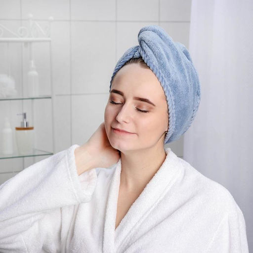 • Чалма для сушки волос Доляна, микрофибра, с пуговкой, цвет синий