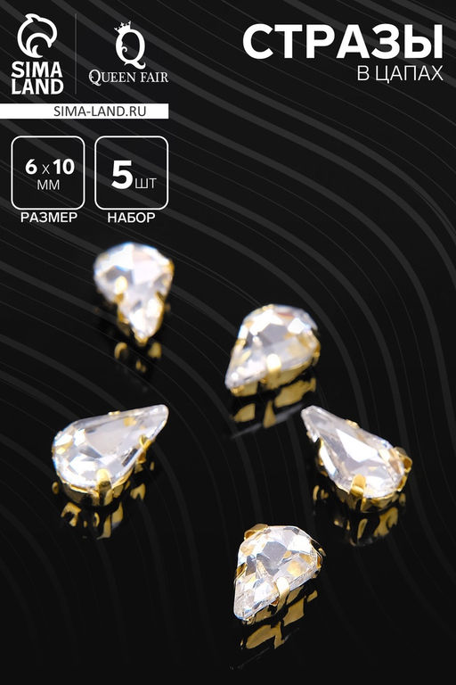 • Стразы в цапах (набор 5 шт.), 6×10 мм, цвет белый в золоте