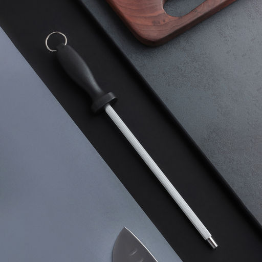 Мусат для заточки ножей позволит всегда вашим ножам оставаться острыми в такой степени, что нарезка тонких ломтиков продуктов никогда не будет проблемой. Мусат 30 см позволит быстро заточить лезвие по принципу нож об нож. В результате оно станет идеально острым. Инструмент оснащён пластиковой ручкой.
