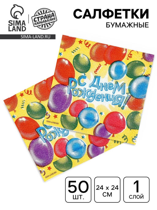 Размер, см: 24 х 24. В наборе, шт.: 50. Фасовка, шт.: 50. Тематика: Воздушные шары. Символ года: Нет. Тематика праздника: День рождения. Тип бумаги: Однослойная. Вид: С рисунком. Бесплатная доставка: Да. Наша разработка: Да.