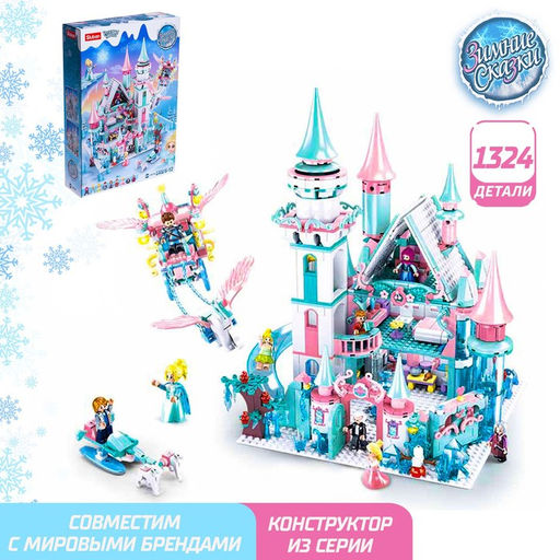 Из конструктора Зимние сказки ребёнок соберёт волшебный замок с девятью крошечными жителями. Готовый домик украсит антураж, добавит комнате сказочной атмосферы. Малыш разыграет множество сценариев и будет сам придумывать сюжеты своих историй.ХарактеристикиВ комплекте 1 324 детали и 9 фигурок сказочных жителей.Компактные локации замка и аксессуары придают ему реалистичности.Ширина готового домика 29,5 см.Конструктор совместим с игрушками мировых брендов.Рекомендовано для детей от 6 до 12 лет.Развиваемся, играяИгрушки радуют детей и делают их досуг весёлым и увлекательным. А ещё они помогают развиваться. Например сборка конструктора помогает развивать мелкую моторику, усидчивость и логическое мышление. Сюжетно-ролевые игры развивают фантазию. Возраст: От 6 лет. Количество минифигур: 9. Среднее время сборки, мин: 675. Количество элементов: 1324. Тематика праздника: 8 Марта. Тематика конструктора: Сказки. Уровень сложности: Продвинутый. Бесплатная доставка: Да. Размеры товара: 5/23/35.