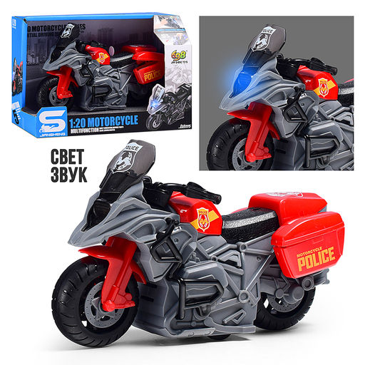 • Мотоцикл "Полицейский байк" 1:20 (свет, звук) в коробке (цвет красный)