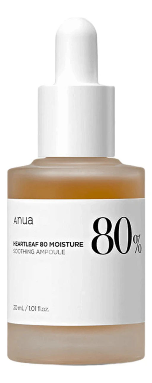 Ампула Heartleaf 80 Moisture Soothing Ampoule из коллекции косметической марки Anua изготовлена на базе экстракта хауттюйнии и предназначена для успокаивающего ухода за лицом.