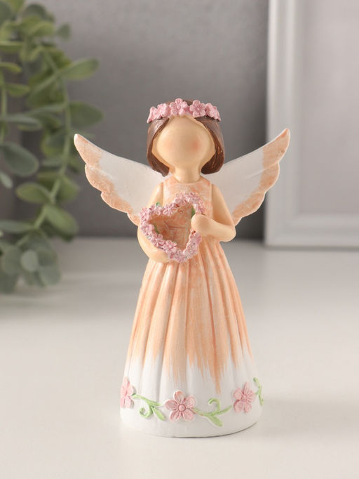 • Фигурка полистоун Девушка-ангел в персиковом платье, с венком-сердце, 8?4.5?12 см