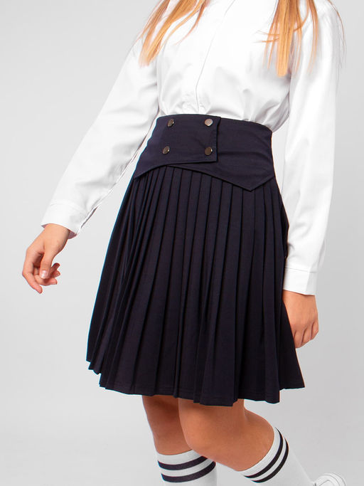 Юбка для девочки Соль&Перец силуэта солнце-клёш, в складку, с декором на поясе. В пояс вшита резинка для регулировки обхвата талии. Износоустойчивый материал позволит надолго сохранить форму и привлекательный внешний вид изделия. Идеальный выбор для создания стильного, школьного образа.