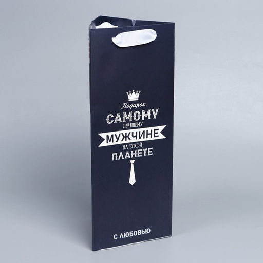 • Пакет подарочный под бутылку, упаковка, Самому лучшему мужчине, 13?32?11 см
