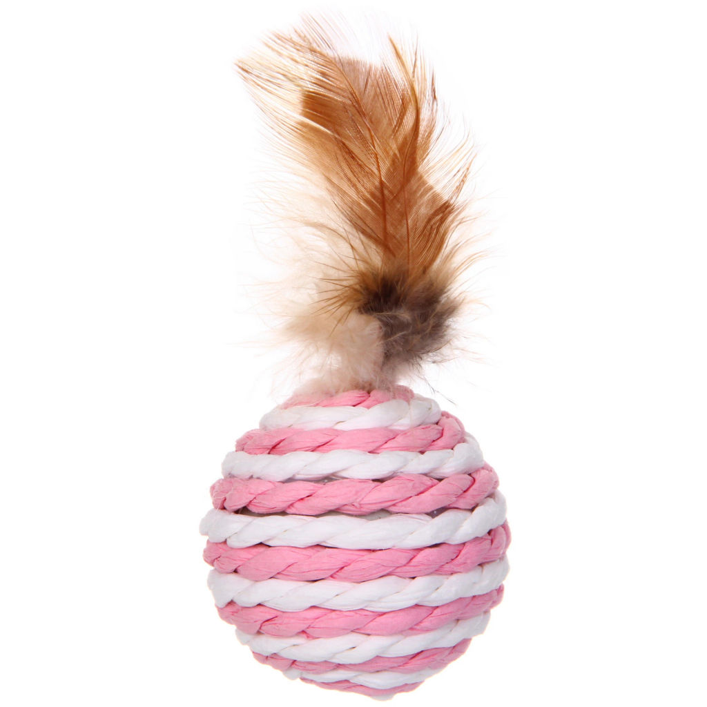 Цена за 6 шт. Игрушка - шарик для кошек "ИГРУЛИК", перышко, цвет розовый, d-5см, длина 10см (пакет с подвесом)