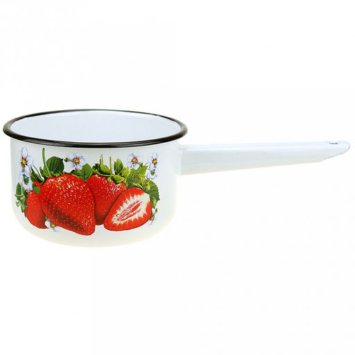 • Ковш эмалированный "Клубника садовая" 1,5л, д16см, h10см, белый (Россия)